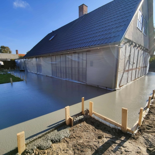 - Støbning af betongulv udendørs til terrasser og værkstedsområder