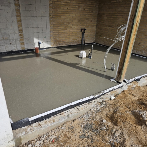 - Støbning af gulv i nybyggeri, tilbygninger og renoveringsprojekter